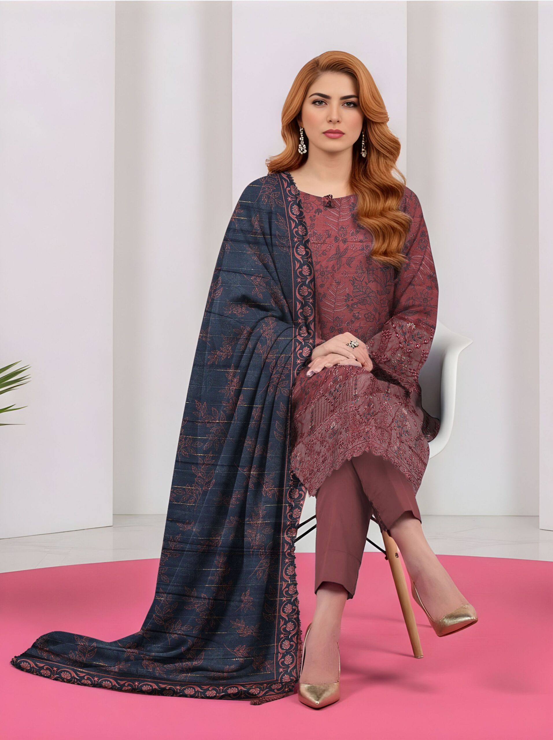Shirt: Printed Fancy Embroidered Khaddar Shirt