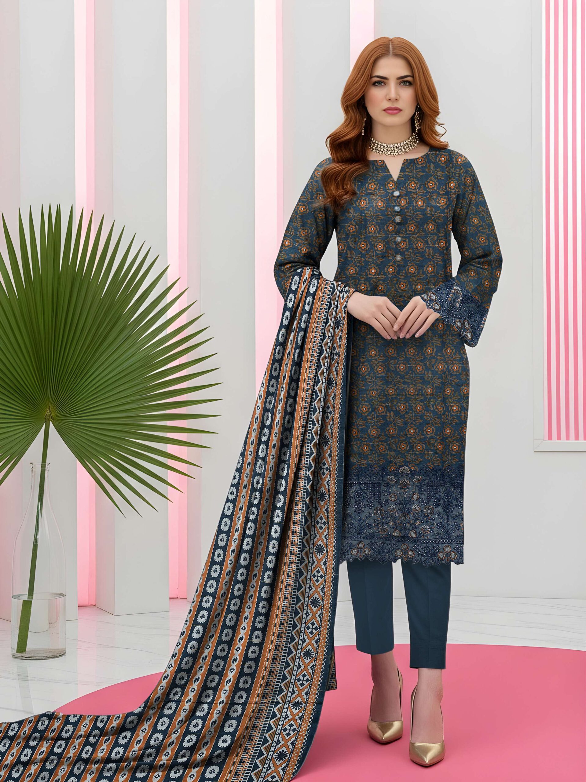 Shirt: Printed Fancy Embroidered Khaddar Shirt