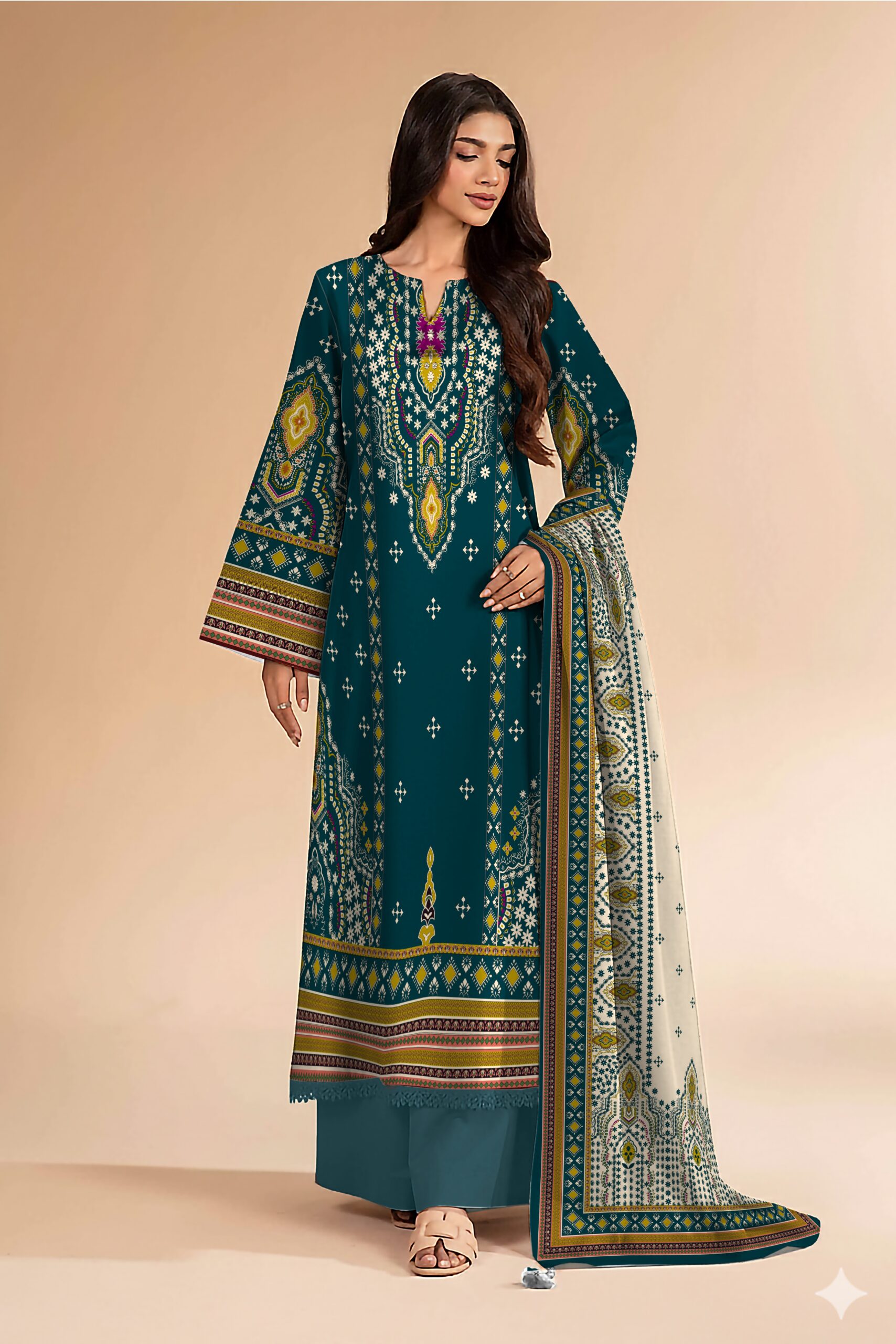 • Dupatta: Printed Khaddar Dupatta