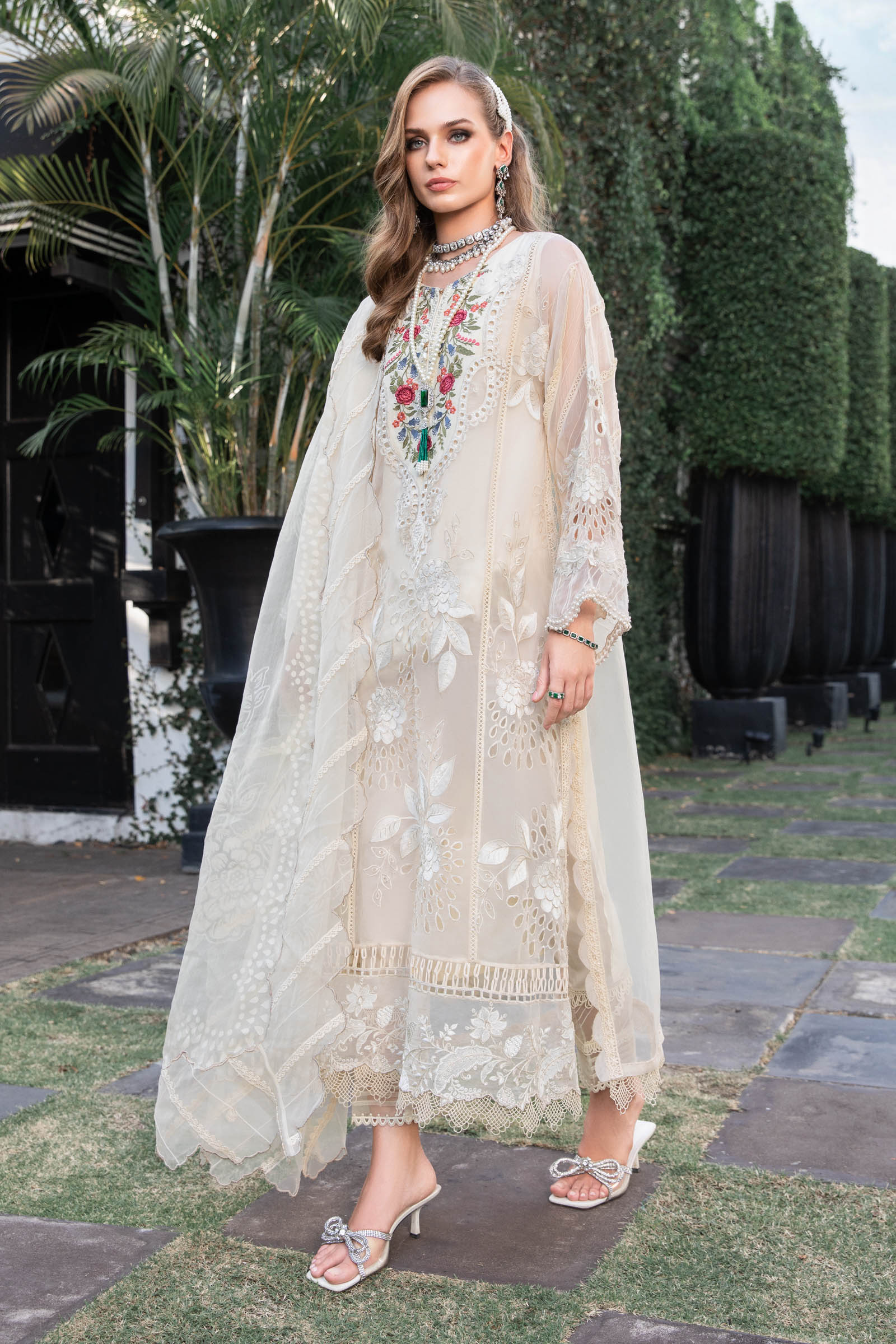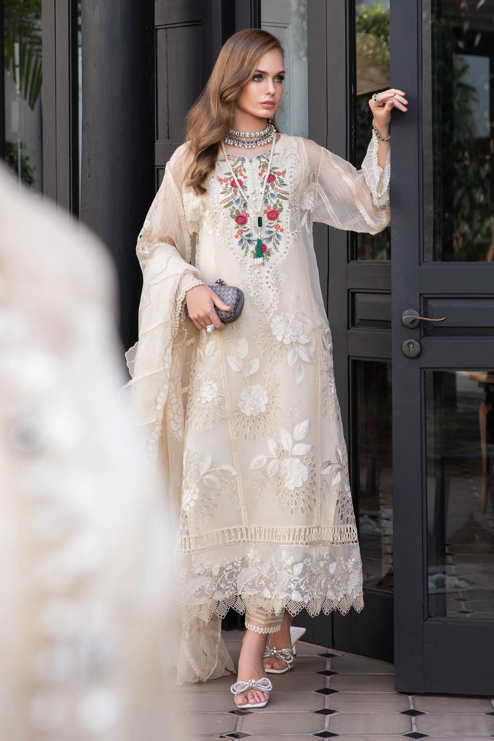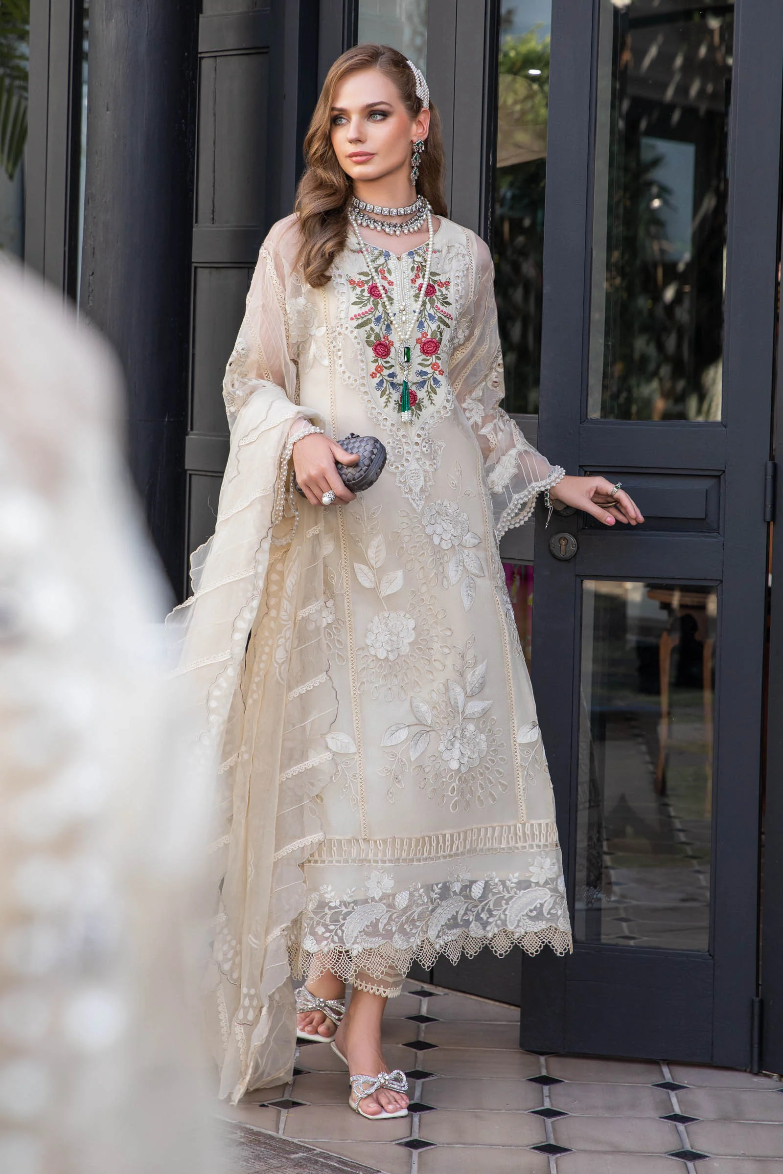 • Luxury Embroidered Pure Bamber Chiffon Dupatta
